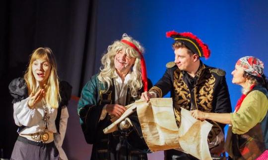 Początek XIX wieku. Na redzie niewielkiego portu w Indiach stoi opuszczony galeon. Na pokład statku wchodzi dama z Polski, Wanda Kowalska, pragnąca wynająć go w daleką, pełną tajemnic podróż. Okazuje się, że ów statek w przeszłości należał do wielkiego pirata - Kapitana Haka. Wanda postanawia wyruszyć wraz z piratami w daleką wyprawę, podczas której załoga statku zwiedzi różne lądy i pozna zwyczaje ludzi na nich zamieszkujących. Podróż w poszukiwaniu tytułowego Skarbu Kapitana Haka odbywać się będzie z niemałym udziałem młodych widzów. Całość zwieńczona jest afrykańskimi tańcami - interaktywna zabawa z publicznością.