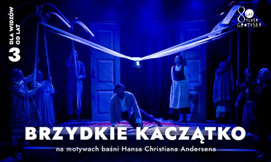 Spektakl oparty na motywach baśni H. Ch. Andersena powstaje na oczach widzów, a zarazem w wyobraźni autora. W domu Andersena wszyscy domownicy chodzą na palcach, żeby nie przeszkadzać w pisaniu kolejnej baśni. A nie da się jej zwyczajnie napisać. Baśń musi urodzić się sama, albo… wykluć. A jak wykluć – to z jajka. Skoro z jajka, to głównym bohaterem baśni będzie Brzydkie Kaczątko. Nasz bohater nieakceptowany tylko za to, że wygląda inaczej przeżyje wiele bolesnych doświadczeń zanim z szarego pisklęcia przemieni się w pięknego łabędzia. Ta naturalna w przyrodzie kolej rzeczy stanie się w teatrze źródłem poetyckiej metafory. Nieżyczliwi ludzie, ukryci pod kostiumami zwierzęcych postaci, dostrzegą tylko powierzchowność głównego bohatera. Dopiero mądre i dobre łabędzie odkryją w nim wewnętrzne piękno.