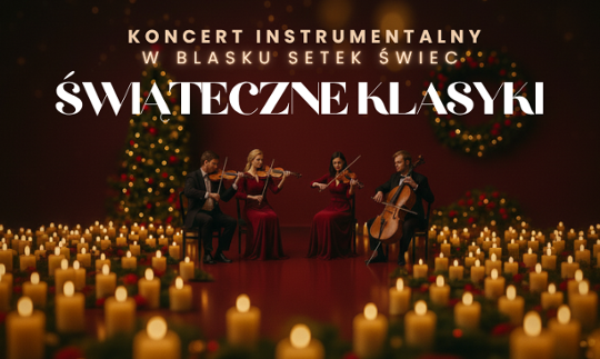 Zapraszamy Cię na niezapomniany wieczór pełen ciepła, nostalgii i magii świąt, podczas którego w kameralnej przestrzeni rozświetlonej setkami świec kwartet smyczkowy wykona poruszające aranżacje świątecznych przebojów – takich jak m.in. All I Want for Christmas Is You, Last Christmas czy Let It Snow – oraz klasycznych kompozycji tworzących niepowtarzalny klimat Bożego Narodzenia.