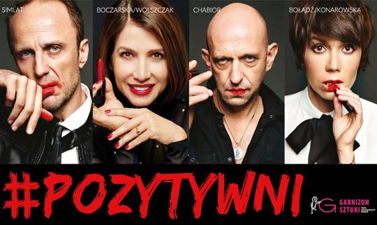 POZYTYWNI to szalona opowieść o tolerancji, akceptacji i poszukiwaniu szczęścia w gwiazdorskiej obsadzie. Na tragikomiczną sesję terapeutyczną zapraszają : Grażyna Wolszczak, Hanna Konarowska/Agata Wątróbska, Janusz Chabior, Łukasz Simlat oraz reżyser: Krzysztof Czeczot i autor sztuki Cezary Harasimowicz. POZYTYWNI to kultowy już i uwielbiany przez widzów spektakl. Producentem spektaklu jest Fundacja GARNIZON SZTUKI.