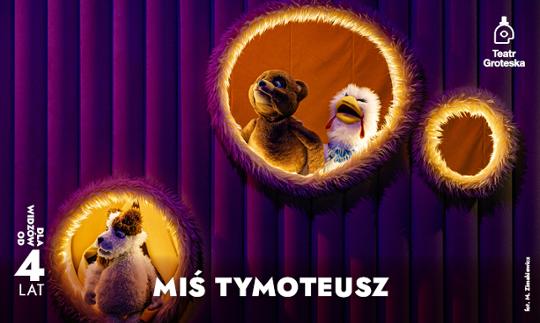 Miś Tymoteusz to spektakl, w którym bohaterowie zostali ożywieni za pomocą lalek typu muppet, a sprzęty kuchenne stają się pełnoprawnymi postaciami. Jest pełen humoru, piosenek i wzruszających momentów. Porusza bliskie dzieciom tematy: pragnienie posiadania przyjaciela, troskę o zwierzątko, samotność i akceptację. Wywoła uśmiech na twarzy każdego widza, a rodziców skłoni do refleksji nad dziecięcą wrażliwością i potrzebą zaufania. Wojtek Stachura, reżyser spektaklu