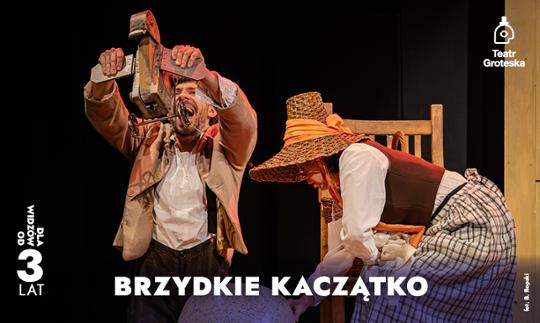 Spektakl oparty na motywach baśni H. Ch. Andersena powstaje na oczach widzów, a zarazem w wyobraźni autora. W domu Andersena wszyscy domownicy chodzą na palcach, żeby nie przeszkadzać w pisaniu kolejnej baśni. A nie da się jej zwyczajnie napisać. Baśń musi urodzić się sama, albo… wykluć. A jak wykluć – to z jajka. Skoro z jajka, to głównym bohaterem baśni będzie Brzydkie Kaczątko. Nasz bohater nieakceptowany tylko za to, że wygląda inaczej przeżyje wiele bolesnych doświadczeń zanim z szarego pisklęcia przemieni się w pięknego łabędzia. Ta naturalna w przyrodzie kolej rzeczy stanie się w teatrze źródłem poetyckiej metafory. Nieżyczliwi ludzie, ukryci pod kostiumami zwierzęcych postaci, dostrzegą tylko powierzchowność głównego bohatera. Dopiero mądre i dobre łabędzie odkryją w nim wewnętrzne piękno.