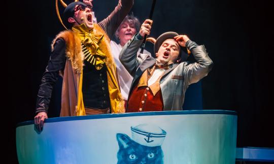 Spektakl Gdzie gubią się zdania to propozycja teatralna dla dzieci od 6 roku życia oraz ich rodziców, opiekunów lub pedagogów, opowiadająca o literatach krakowskich. Spektakl powstał z inspiracji Krakowem jako Miastem Literatury UNESCO i oparty jest na wątku zgubienia pewnego tajemniczego zdania przez główną bohaterkę – Wisławę Szymborską. By odnaleźć owo zdanie, poetka wyrusza w niezwykłą podróż, a towarzyszą jej dwaj równie niezwykli pomocnicy – Mól Futrzany i Rybik Cukrowy. Trójka wędrowców, podążając ukochanymi krakowskimi ścieżkami Noblistki, natrafia na bohaterów, którzy zaczerpnięci zostali z twórczości innych krakowskich literatów: Haliny Poświatowskiej (Pajęczyca, wiersz Pająk), Sławomira Mrożka (Gruby, Średni i Mały, dramat Na pełnym morzu), Stanisława Lema (Litery inspirowane opowiadaniem Jak ocalał świat), Wojciecha Widłaka (Mucha Bzyk-Bzyk z serii o Panu Kuleczce); ale spotykają na swojej drodze również samego Czesława Miłosza. Spektakl pomaga dostrzec, jak mocno Kraków związany jest z literaturą i jak silna relacja łączy ją z teatrem. Historia jest opowieścią o tym, jak ogromną wartość posiada niczym nieskrępowana zabawa skojarzeniami, inspiracjami i wytworami ludzkiej wyobraźni – czasem tej dziecięcej, o której zapominamy w codziennym pędzie; a także o bliskości z innymi istotami, które nie zawsze mają te cechy, których od nich najbardziej oczekujemy. /Michał Kaźmierczak, dramaturg/
