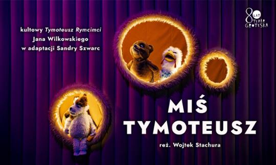 Miś Tymoteusz to spektakl, w którym bohaterowie zostali ożywieni za pomocą lalek typu muppet, a sprzęty kuchenne stają się pełnoprawnymi postaciami. Jest pełen humoru, piosenek i wzruszających momentów. Porusza bliskie dzieciom tematy: pragnienie posiadania przyjaciela, troskę o zwierzątko, samotność i akceptację. Wywoła uśmiech na twarzy każdego widza, a rodziców skłoni do refleksji nad dziecięcą wrażliwością i potrzebą zaufania. Wojtek Stachura, reżyser spektaklu