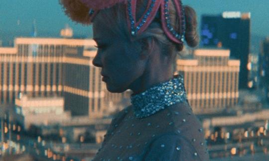 Intymny, rozpięty pomiędzy iluzjami a rzeczywistością, luksusową fasadą a surowym życiem, które toczy się za jej kulisami, „The Last Showgirl" jest także unikatowym portretem miasta. Zwykle pokazywane nocą, rozświetlone neonami niczym park rozrywki, Las Vegas u Gii Coppoli jest filmowane za dnia na ziarnistej taśmie 16 mm, by odsłonić, co kryje się za blichtrem i magią. Niezwykłe uczucie „zamknięcia w akwarium", które może towarzyszyć przebywaniu w stolicy rozrywki, oddają zastosowane specjalne anamorficzne obiektywy. Las Vegas u Coppoli jest miejscem bez kryjącego upływ czasu make-upu, którego splendor nieuchronnie przemija - i które łączy z Shelley wspólna niepewna, ale pełna nadziei przyszłość.