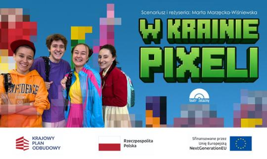 W KRAINIE PIXELI to nowoczesny spektakl dla dzieci, który wciąga dynamiczną akcją i porusza ważne tematy bliskie młodym widzom. Opowiada historię czwórki uczniów, którzy w magiczny sposób trafiają do świata gry komputerowej. Próbując „wygrać”, muszą zmierzyć się z kolejnymi zadaniami – pozornie typowymi dla gier, lecz w rzeczywistości dotyczącymi współpracy, zaufania i akceptacji siebie oraz innych.