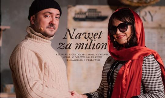 "Nawet za milion" to błyskotliwa komedia pełna zwrotów akcji, inteligentnego humoru i zaskakujących sytuacji. Porywające tempo i dialogi, które bawią do łez, sprawiają, że ten spektakl to gwarancja doskonałej zabawy. W rolach głównych Marta Marzęcka-Wiśniewska i Grzegorz Eckert, a za reżyserię odpowiada Piotr Wiśniewski.