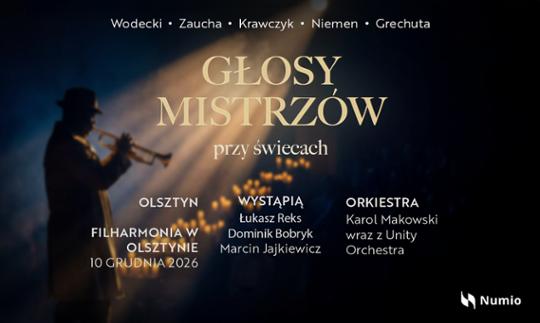 Niezapomniany wieczór - wyjątkowe święto muzyki i hołd dla legend polskiej sceny!Zapraszamy na wyjątkowy koncert, który przeniesie Cię w magiczną podróż przez serce polskiej muzyki.Usłyszysz głosy światowej klasy artystów w ponadczasowych kompozycjach Zbigniewa Wodeckiego, Andrzeja Zauchy, Krzysztofa Krawczyka, Czesława Niemena i Marka Grechuty, prezentowanych w zupełnie nowej odsłonie. Doskonałą oprawę muzyczną zapewni Karol Makowski i Unity Orchestra - spektakl porównywalny z największymi światowymi scenami.Świece, muzyka, emocje - wszystko, co kochasz, w jednym miejscu. Ta atmosfera pozostanie z Tobą na zawsze. Regulamin wydarzenia: https://www.numio.pl/regulamin.pdf