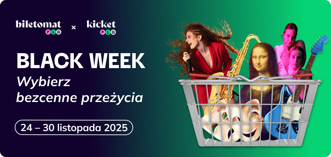 Najbardziej wyczekiwana promocyjna akcja – Black Friday – wystartowała! Teatr, festiwale, muzea – to tylko niektóre miejsca, do których możesz kupić tańsze bilety. Black Friday to u nas nie tylko piątek. W tym roku organizujemy Black Week, który będzie trwać od poniedziałku 24 listopada do niedzieli 30 listopada 2025 roku do godziny 23:59.
